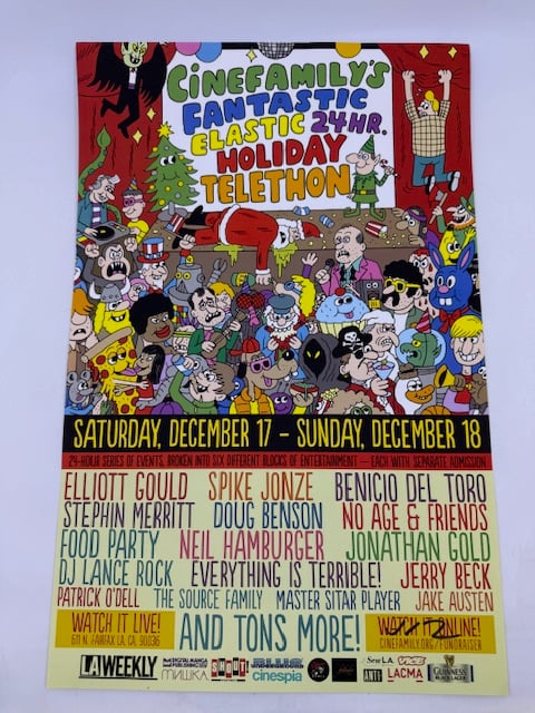 Poster for the "Cinefamily's Fantastic Elastic 24 Hour Holiday Telethon". Signed