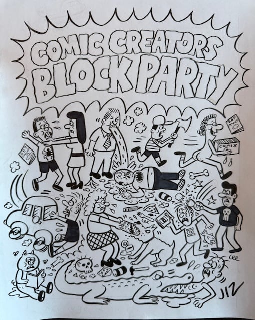 Tshirt design for the 2025 Comic Creators Block Party that took place at the Revenge Of... store in Los Angeles.