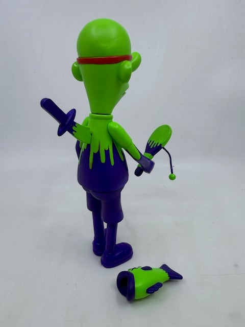 Sinus O'Gynus green/blue variant vinyl figure. Unboxed, signed. Comes with dead fish, paddle ball and knife.